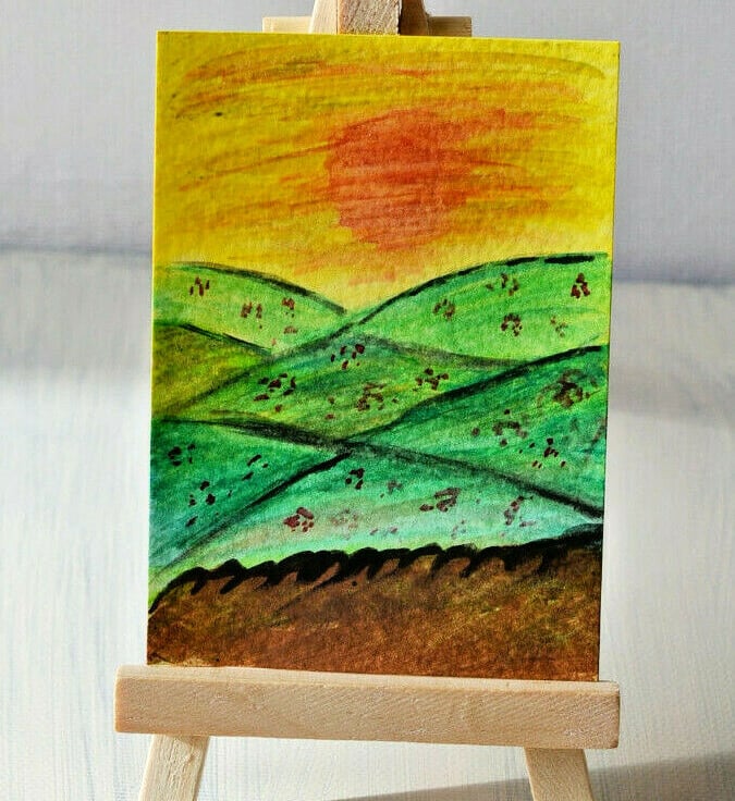 Aceo watercolour painting .Painted on quality watercolour card. Painted using quality inktense watercolour paints.. Size is 3.5" x 2.5" . I can put it into an ivory mount for £1.50. - Keep out of direct sunlight due to fading and away from water.I am adding new paintings each week.