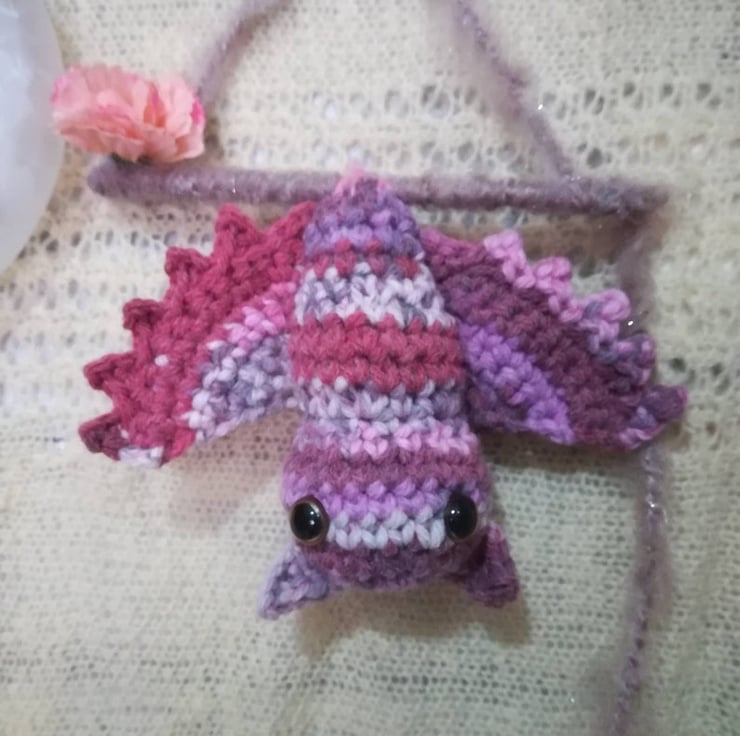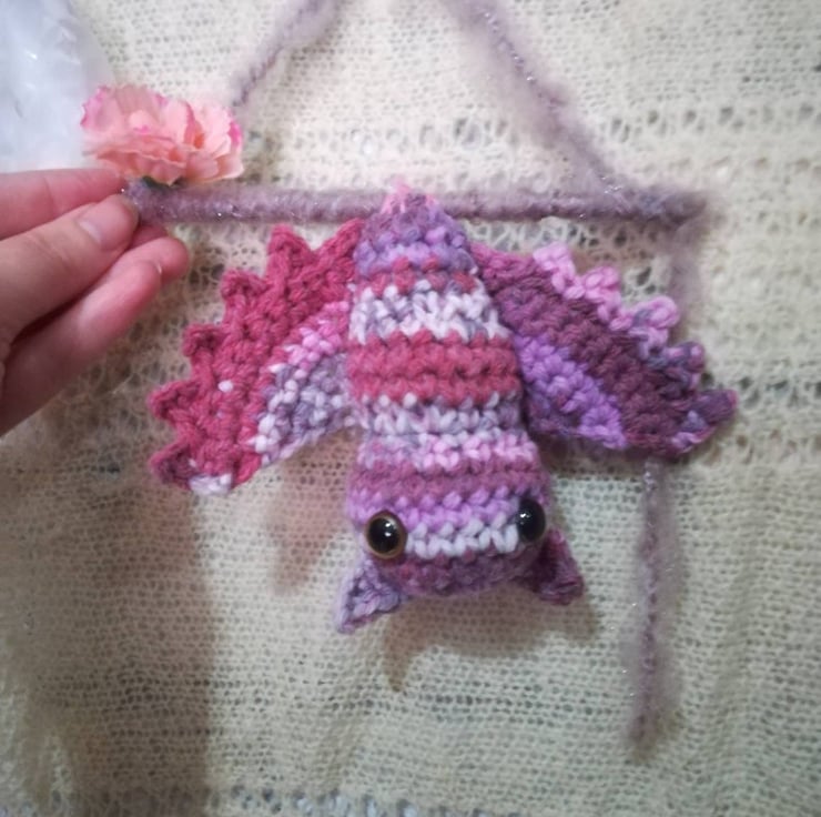 This pretty bat is usually found in a lovely country cottage. It's a beautiful pink colour with a little flower.