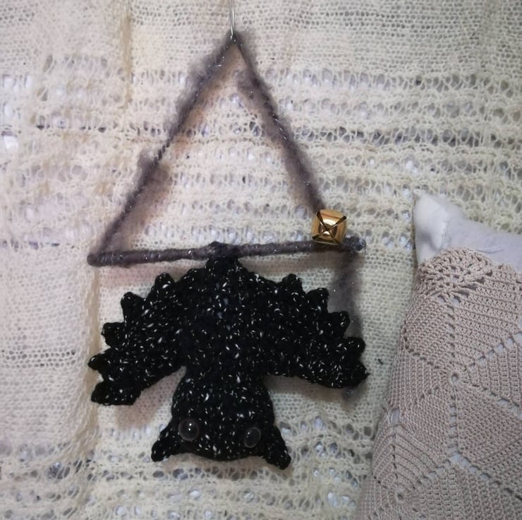 It hangs upside down with a gold bell. Bats in the home are also a symbol of good luck.