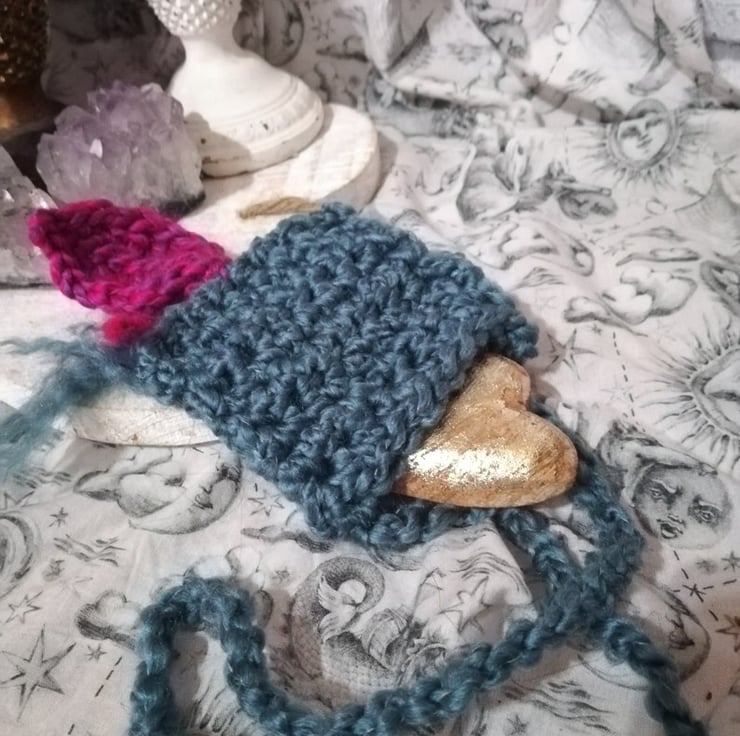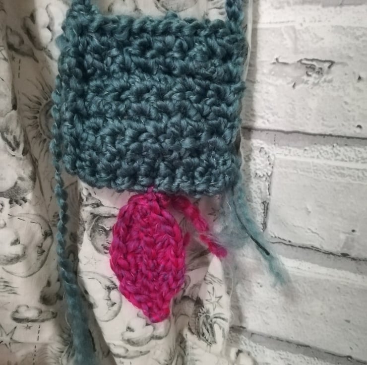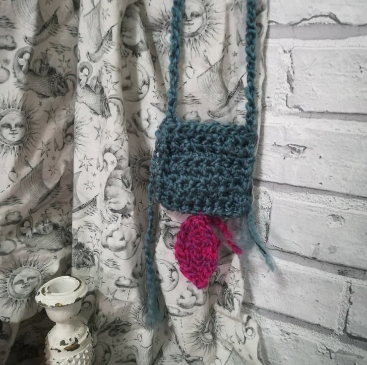 This pixie pouch necklace is 3 inches square plus a leaf at the bottom. You can even add your own little charms or buttons to decorate it.
