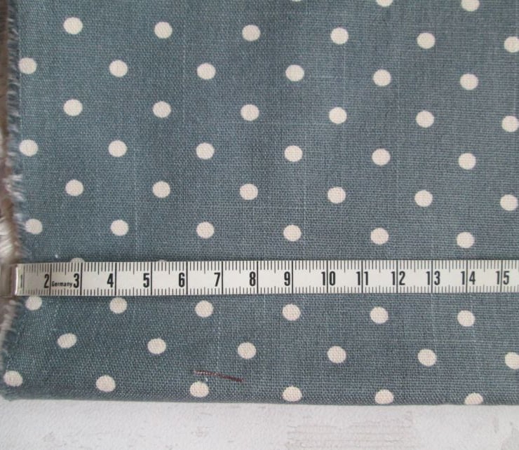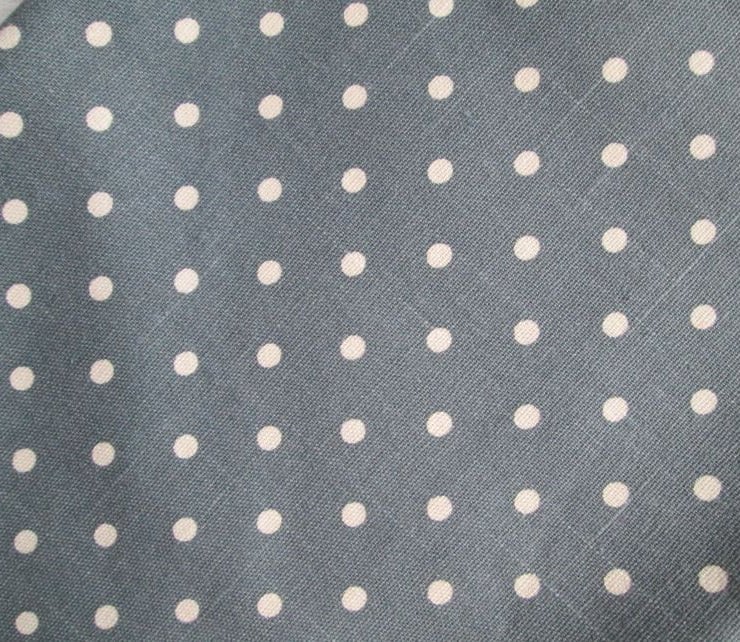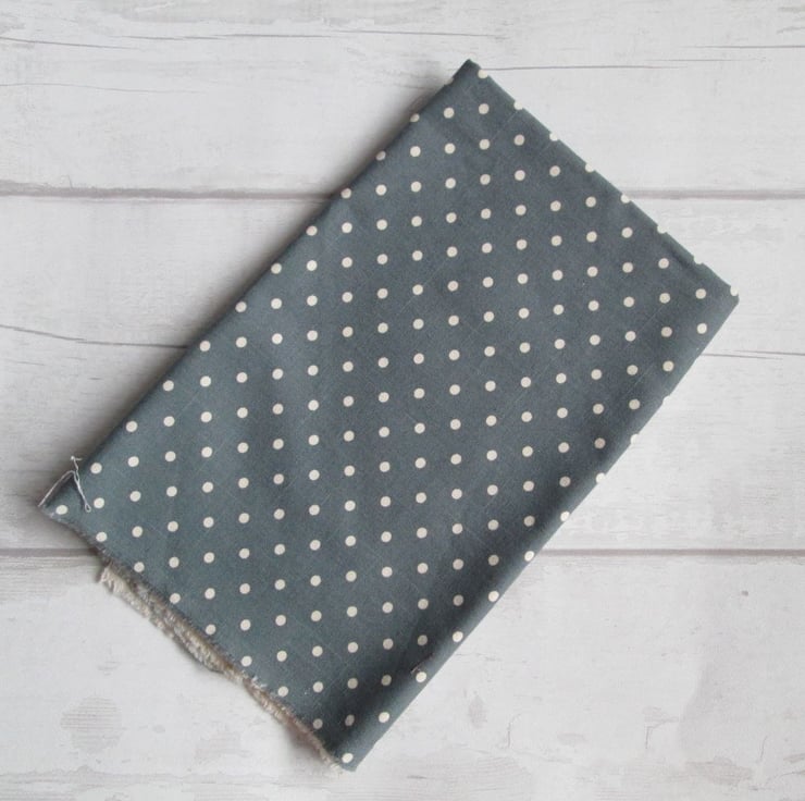 Half a metre of heavyweight mid-grey cotton patterned with 5 mm cream/off white spots. Suitable for needlework projects or bag making.
