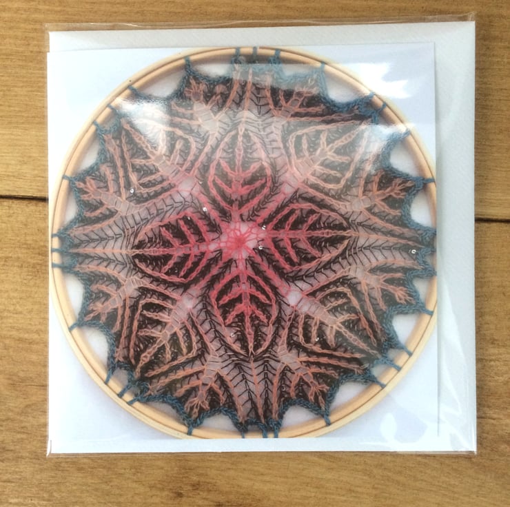 Suitable for Birthdays, Mothers Day, Get Well Soon or just to keep in touch. Any knitting friend would appreciate the beauty and the work involved in the mandala creation.