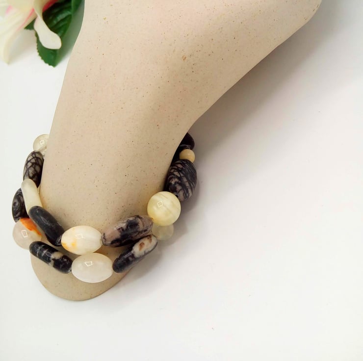 2 Strand Bracelet with Black & White Mixed Jade Agate & Quartz Beads, Bracelet, Quartz Jade and Agate Beaded Bracelet, Birthday Gift, Anniversary Gift, Christmas Gift, Gift for Her