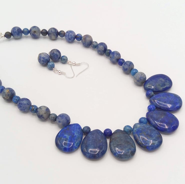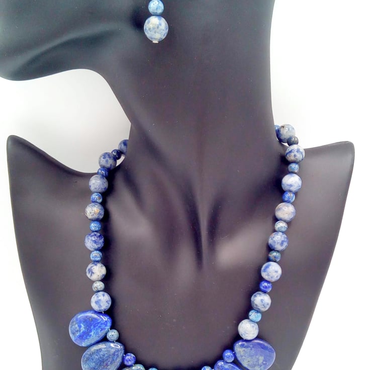 Necklace and Earrings with Round and Teardrop Lapis Lazuli Beads, Blue Beads Necklace Set, Lapis Lazuli Jewellery Set, Necklace, Earrings, Semi Precious, Accessories, Birthday Gift, Christmas Gift, Mother's Day Gift, Gift for Her