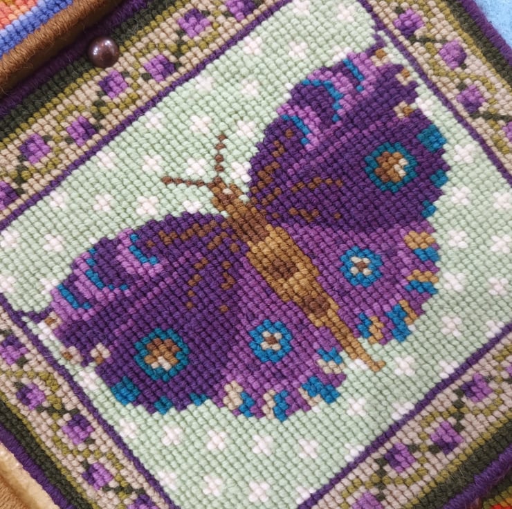 This design can become a wall plaque, cushion insert, bag front or mat. Sewn using Victorian cross stitch, no need for a frame.