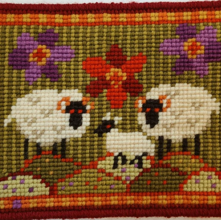 Sewn using Victorian cross stitch, no need for a frame.
