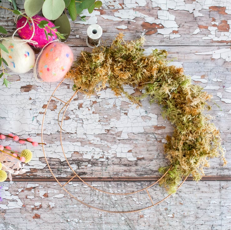 This kit contains everything you need to make a large spring wreath using fresh foliage and a traditional moss base.