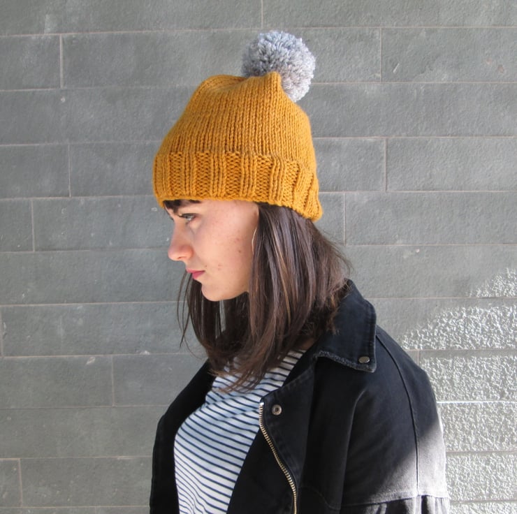 This listing is for the Bobble Hat in Navy Blue Chunky Yarn with Mustard Pom Pom only.
