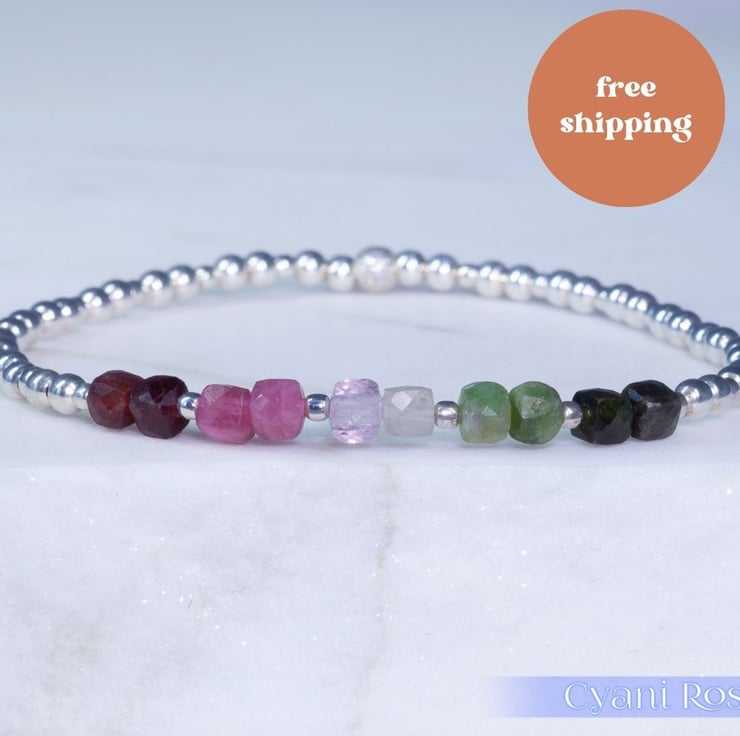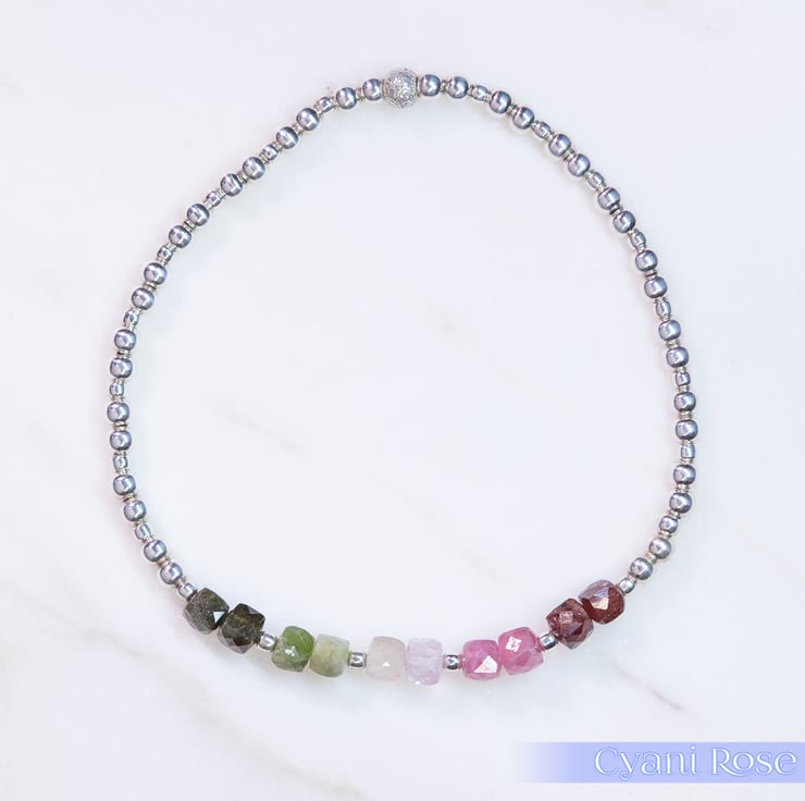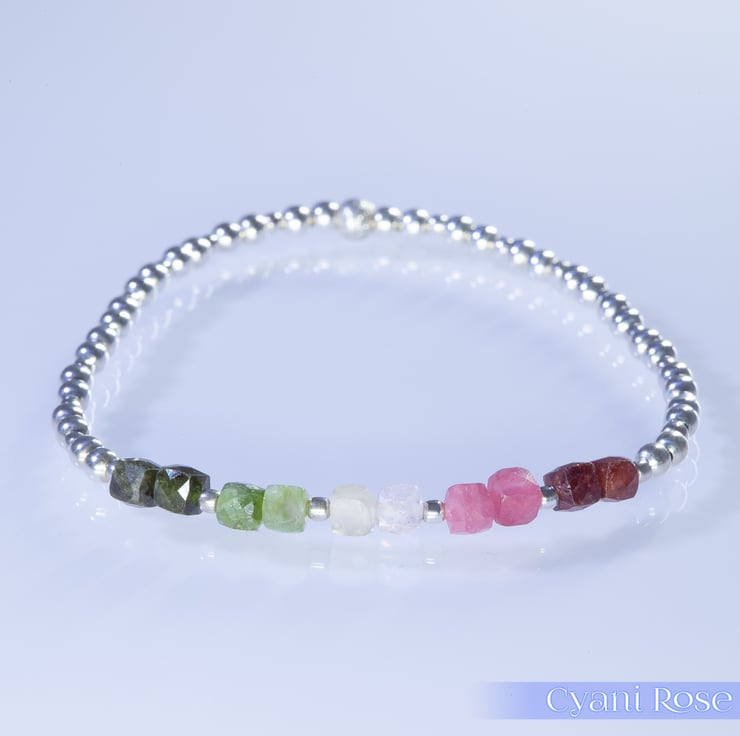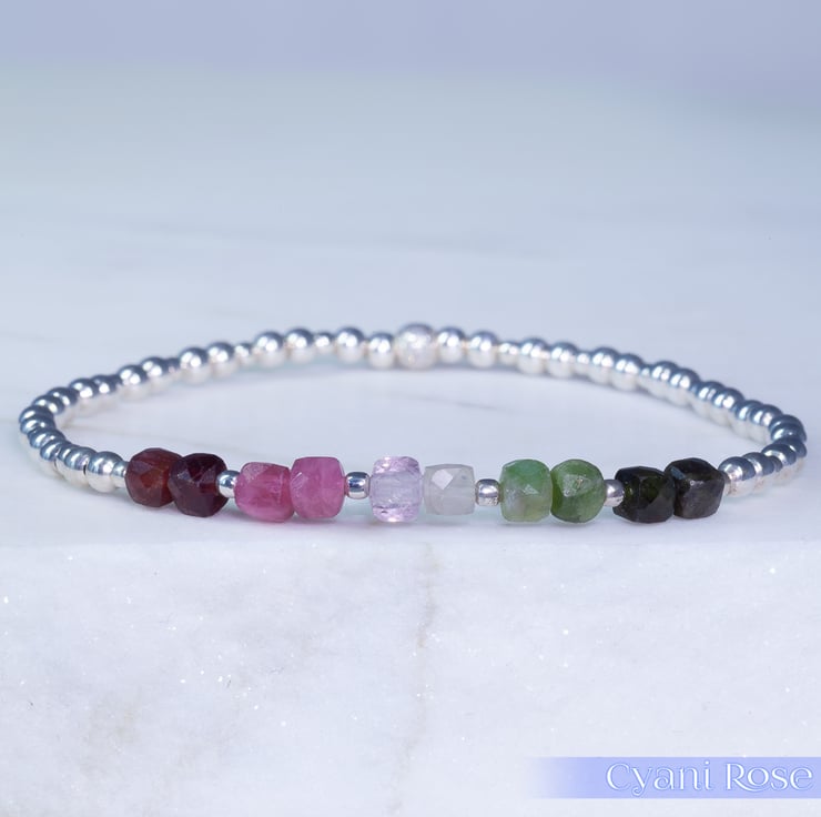 This beautiful handmade gem bracelet includes AA grade multi tourmaline 4mm cubed beads and 2/3/4mm sterling silver beads.