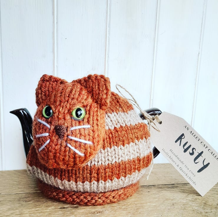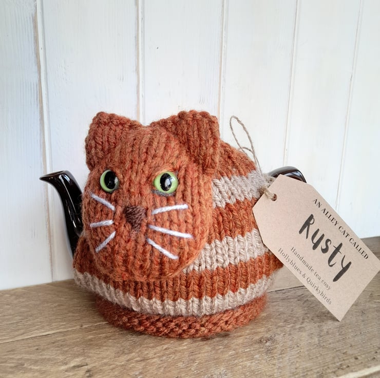This is 'Rusty' he is a quirky alley cat tea cosy.