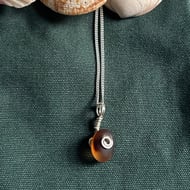 Pendant is attached to a display card, wrapped in tissue paper, placed in a lovely Jute gift bag.
