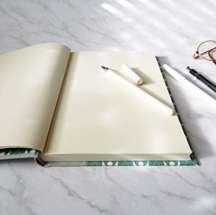 The book contains 80 pages (160 sides) of good quality ivory recycled cartridge paper. The paper is suitable for all dry media, making it an ideal sketchbook, notebook, journal, recipe book or other writing book.