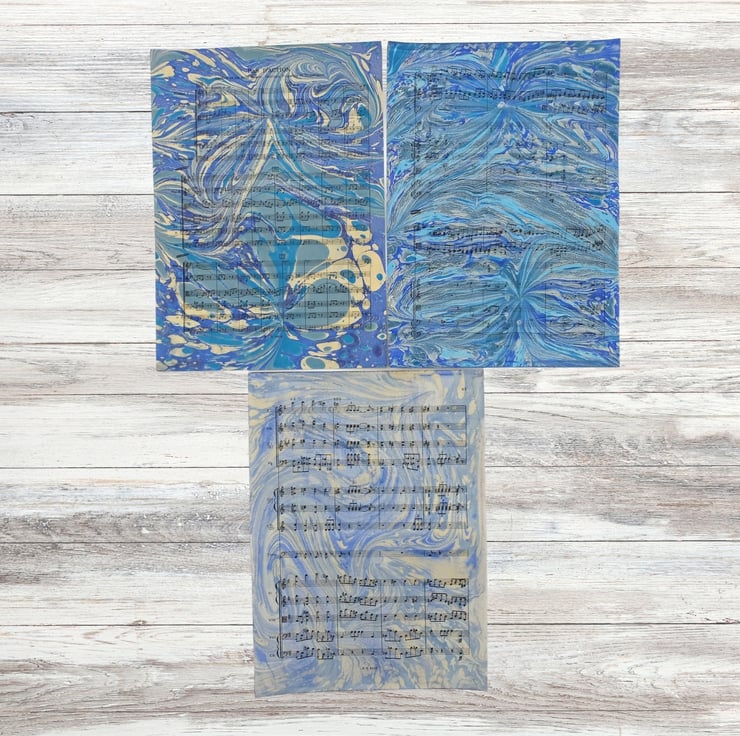 All sheets marbled by me. The images show the actual sheets you will receive.