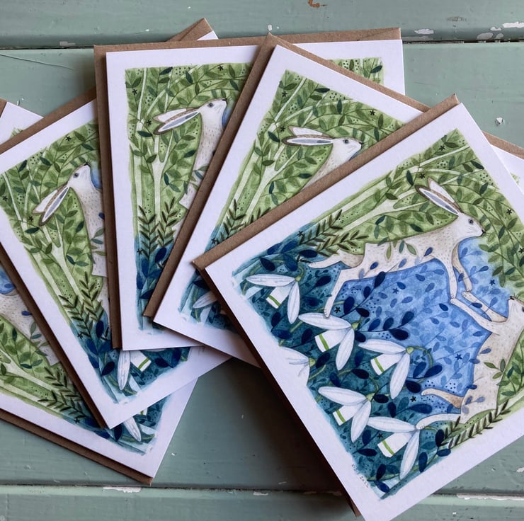 Spring Welcoming is an original design by Three Acorns. It is a 12.5cm square greeting card, blank on the inside and supplied with recycled envelope. Suitable for Spring Birthdays, Wedding, etc or framed as artwork.