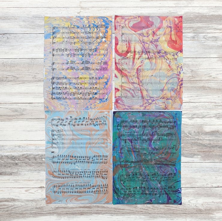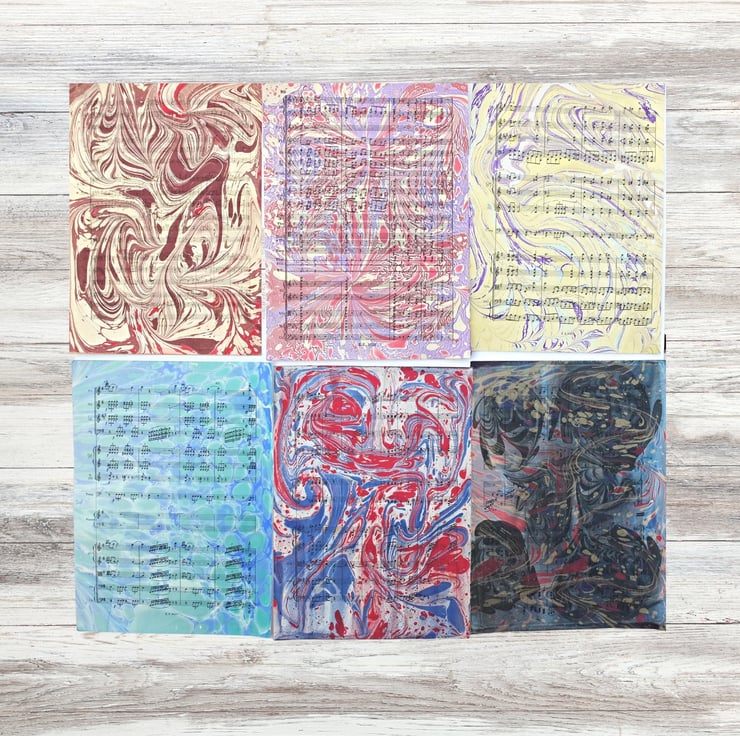 All sheets marbled by me. The images show the actual sheets you will receive.