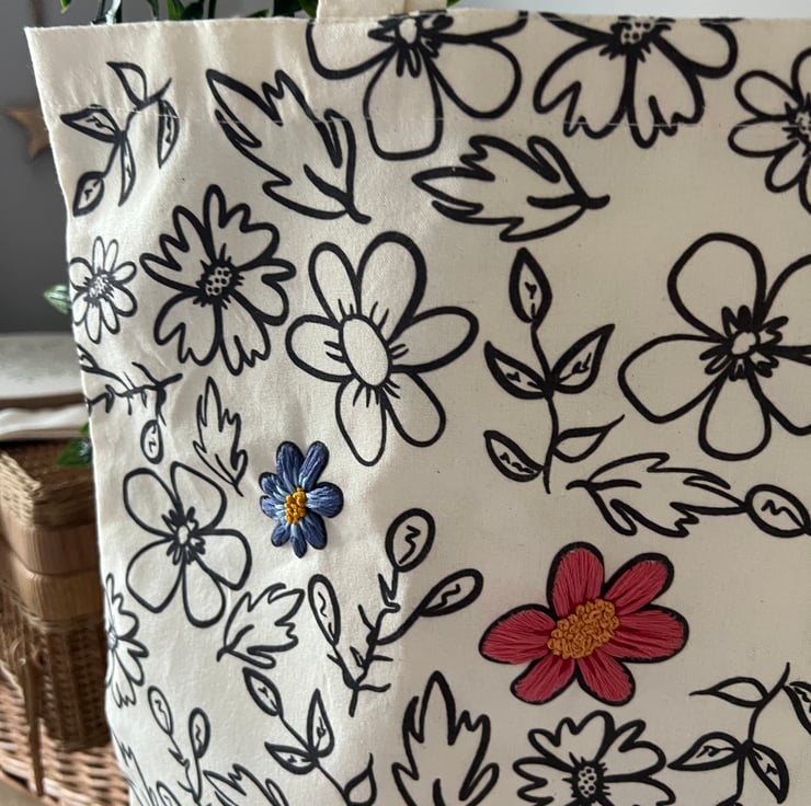Stitch your own floral shopper bag! Use the floral design to create your own unique bag. Stitch all or just some of the flowers in your choice of colours. A perfect project or gift.