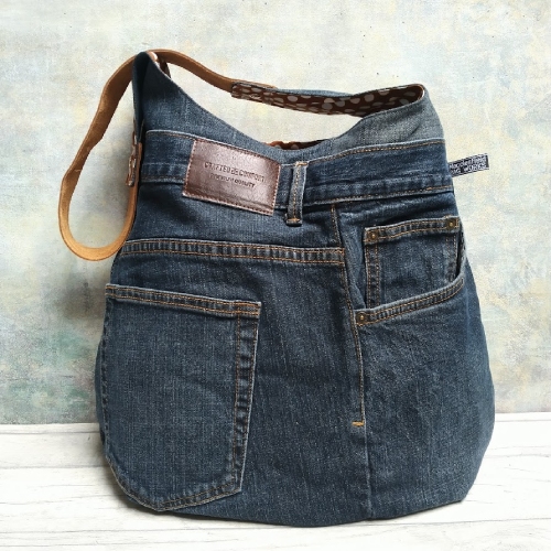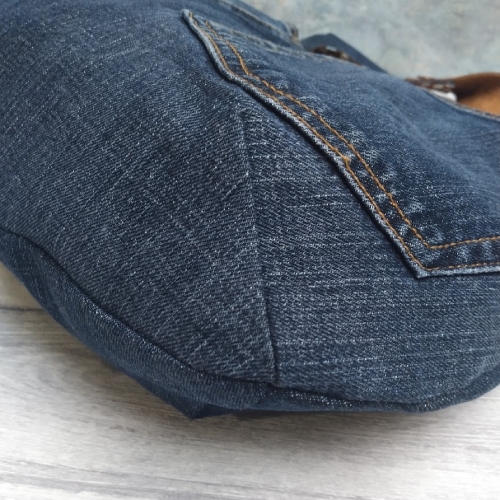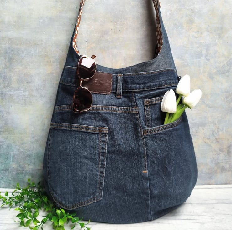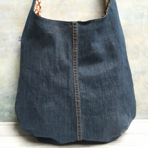 This dark denim shoulder hobo bag has been designed and handmade by re-purposing a pair of pre-loved denim jeans. It’s large and roomy, slouchy and generous and perfect for throwing in all your everyday essentials and more!