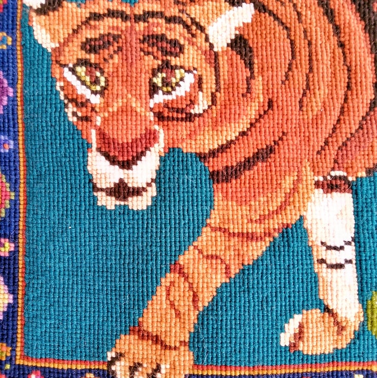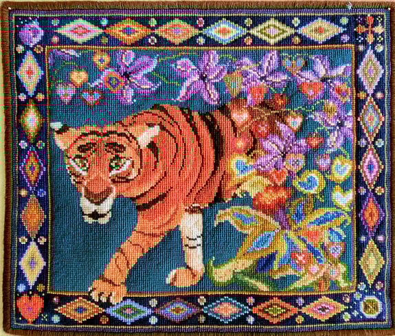 Stunning Tiger Tapestry Cushion or Wall Hanging kit, sewn in Victorian Cross Stitch.