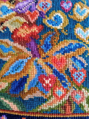 This was originally designed as a piano stool cover as an anniversary gift for my husband. there's 25 heart shaped flowers in the design.