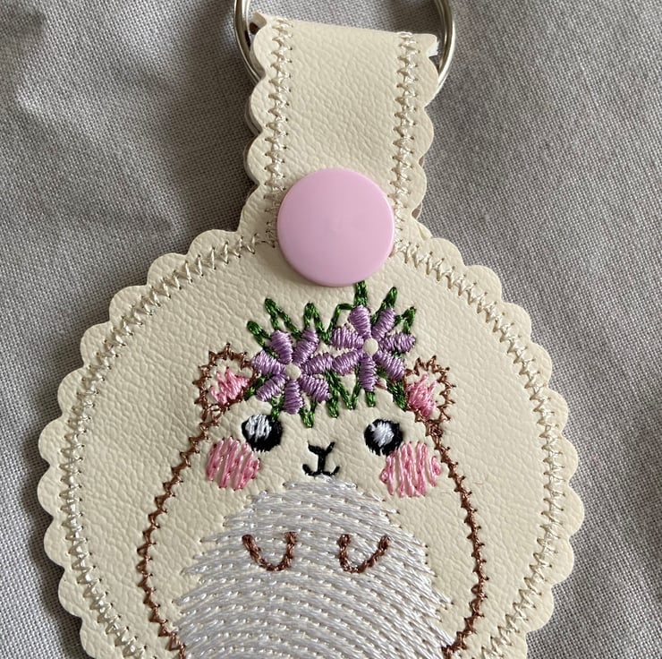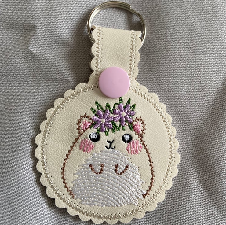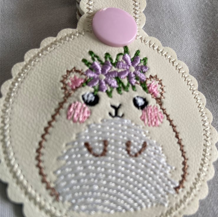 This cute hamster keyring has been embroidered onto faux leather