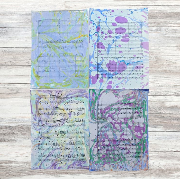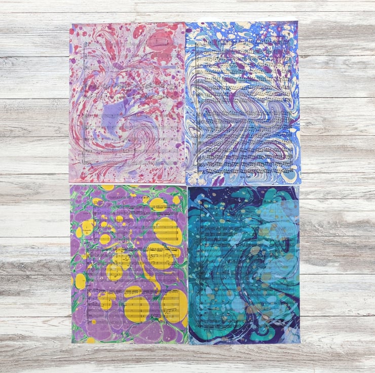 All sheets marbled by me. The images show the actual sheets you will receive.