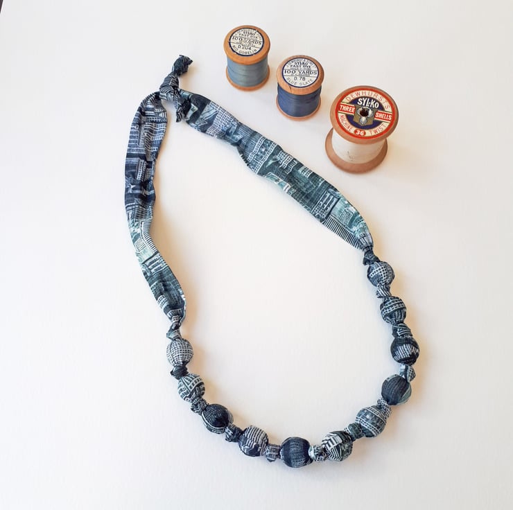 Indigo Inky Blue Grey Liberty Architecture Print Fabric Necklace - Harper City