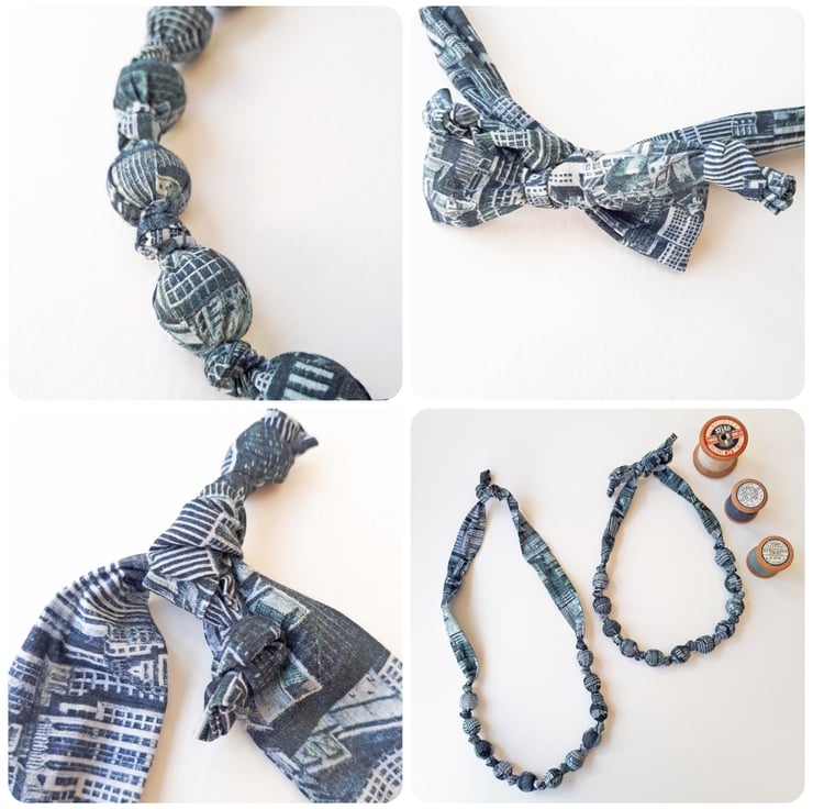 This Liberty print fabric necklace can be tied with a bow or a knot to vary the length from choker to mid chest. It is made out of Tana Lawn 100% cotton and so feels very soft next to your skin and has just the right weight to it to make it hang nicely.