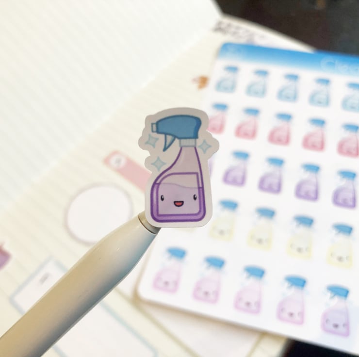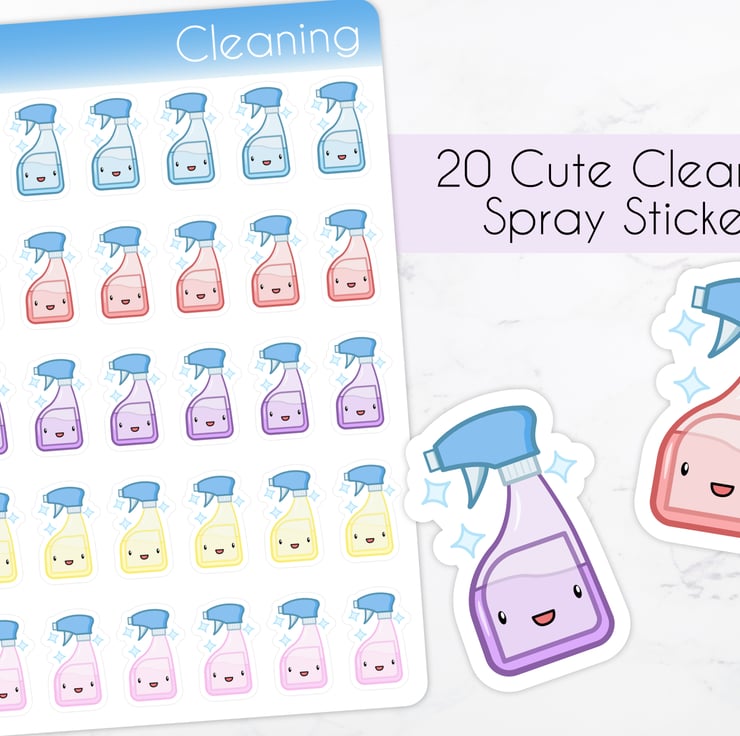 Cleaning isn't exactly fun, but with these reminder stickers it can at least be cute. These spray bottles are perfect for brightening up your planner, calendar, diary, or even scrapbook. There are 20 individual stickers per sheet in 5 different colours so you can shake things up every now and again.