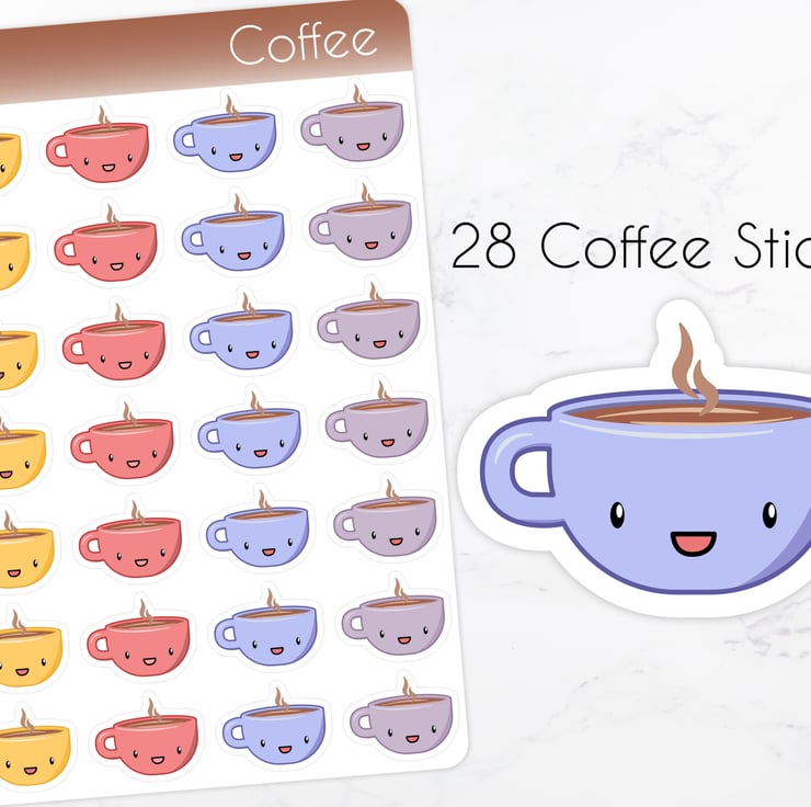 These coffee cup stickers work great at marking out some time for yourself in your planner, or maybe when you're planning to meet up with someone for a cup of coffee. Use these cute stickers to brighten up your journal or diary.