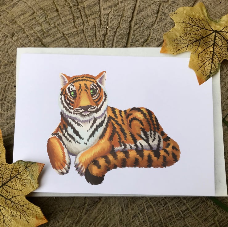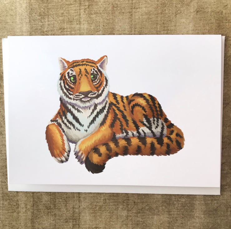 A Tiger blank greeting card with white envelope by DuffleCat Prints (Damian Case)