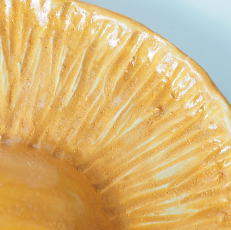 This one is finished with a Tuscany orange glossy glaze to give a bright pop of colour to your setting - whether the sun is out or not !