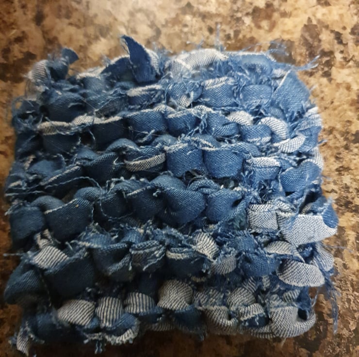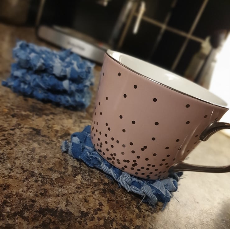 Chucky denim knotted coasters. Thick enough to withstand your tasty morning fuel and cute enough for your coffee table.