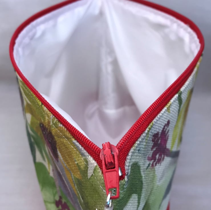 Handmade bags for toiletries, make up, daily beauty essentials and many other uses with a zipper across the top for closure, great for storing personal items.