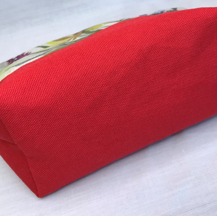 This canvas flower fabric is like a linen cotton and the red on the bottom is cotton.