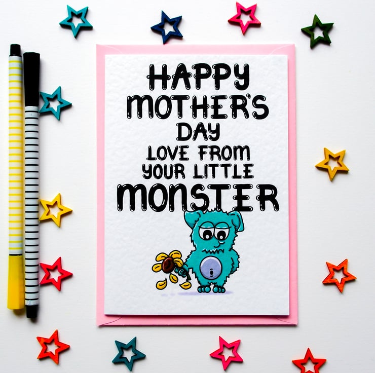 A cute Mother's Day card to send to Mum, Mommy, Grandma from her little monster also known as her daughter, son or grandchild!