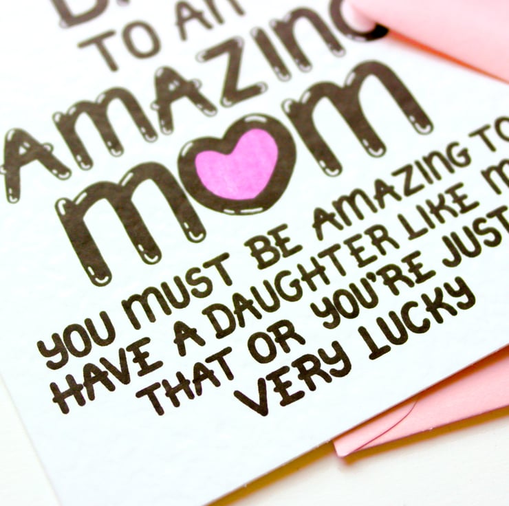 A funny Mother's Day card to send to your Mum from a daughter to make her laugh.