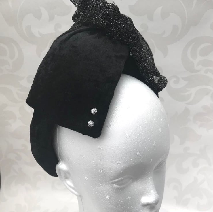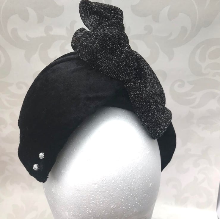 headpiece featuring black velvet padded headband,