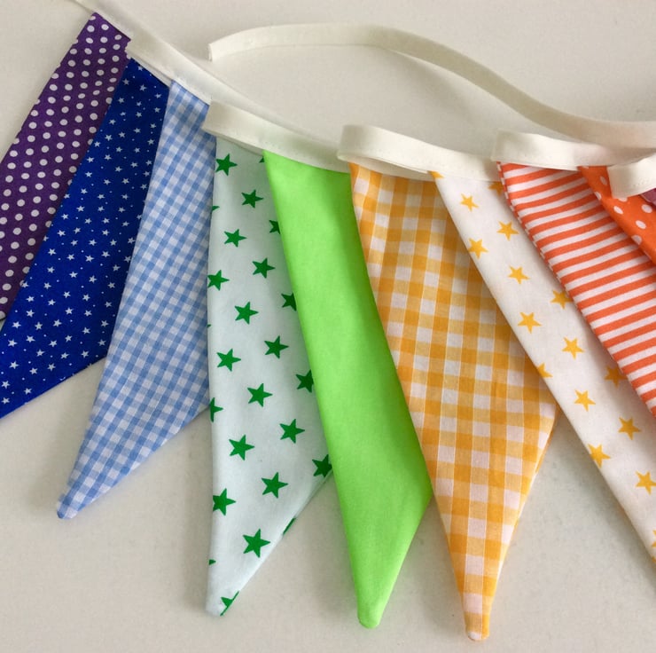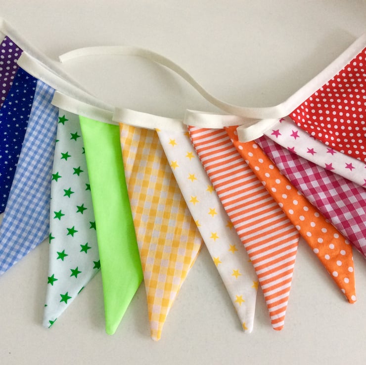 This super bright bunting in a rainbow of colours is perfect for brightening any room. This reusable double sided bunting in your favourite colours would give you years of faithful service.