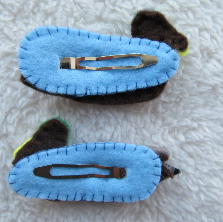 These cute hair clips are soft and comfy to wear, and made from felt with hand-embroidered details. They stay in well all throughout the day.