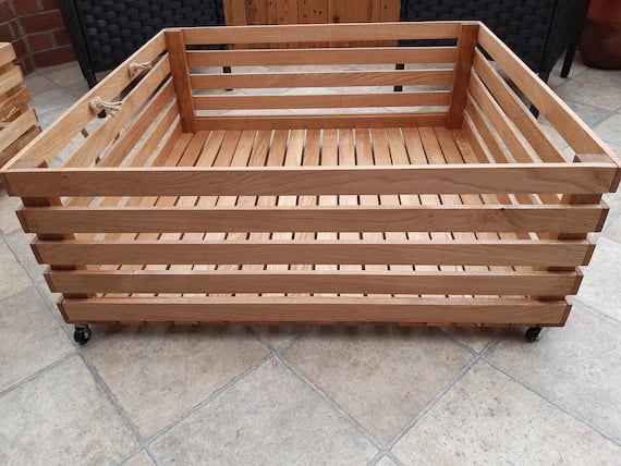 These beautiful handcrafted under bed storage drawers are made from beautiful solid oak to give the drawers strength and stability while looking fantastic. Each one is finished with hemp rope handles and sits on 4 swivel wheel casters for easy movability.