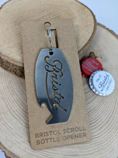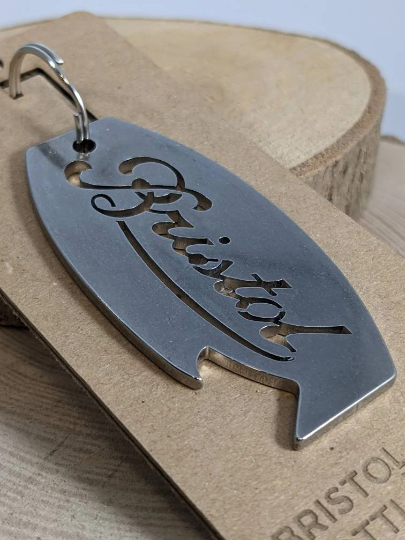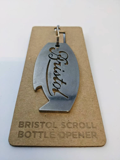 Our popular Bristol Scroll made into this luxurious bottle opener keyring.