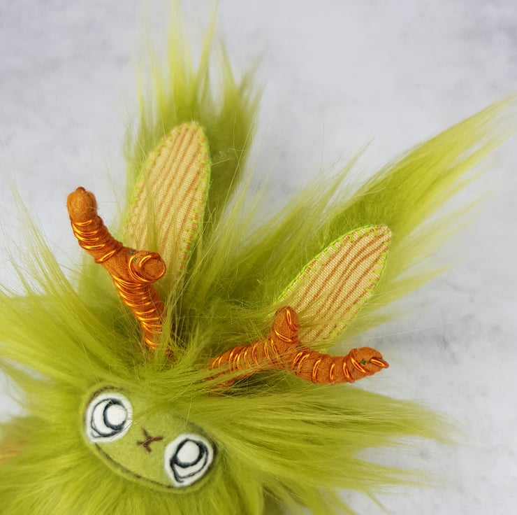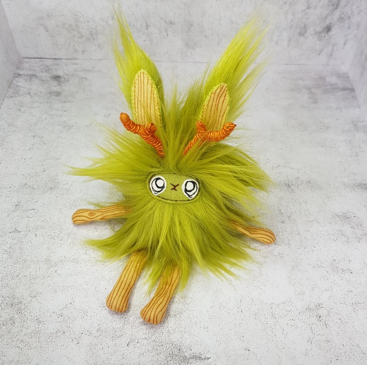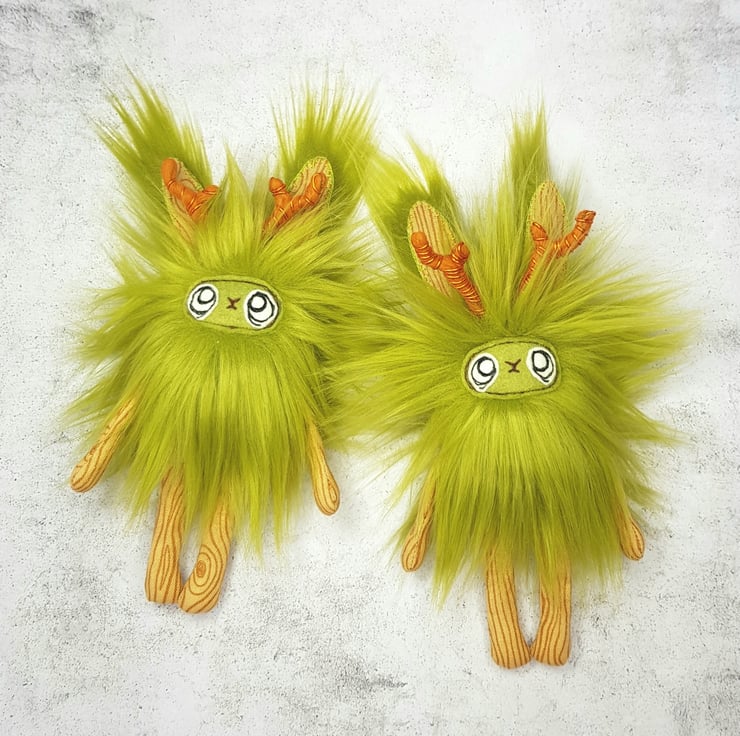 A gorgeous little spring decoration to add magical whimsy to your home. This Woodland Jackalope is made from thick and soft luxurious faux fur. The antlers are made from felt and wire and the ear fronts, arms and legs are made with a beautiful tree bark print cotton. The Jackalope can sit against something or can be hung from its transparent loop. Their faces are free motion embroidered on felt. Jackalope measures roughly 16cm tall and 6cm wide. This listing is for one Jackalope only and will be chosen randomly from the two pictured above. This is not a toy and made for decorative purposes only.