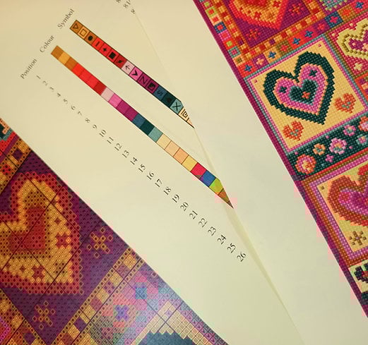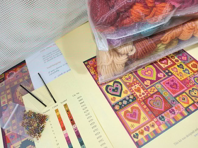 This design would look equally well in a traditional or contemporary setting. Comprising of lots of little ' pictures' each of which can be sewn individually, this design would be suitable for any level of experience.