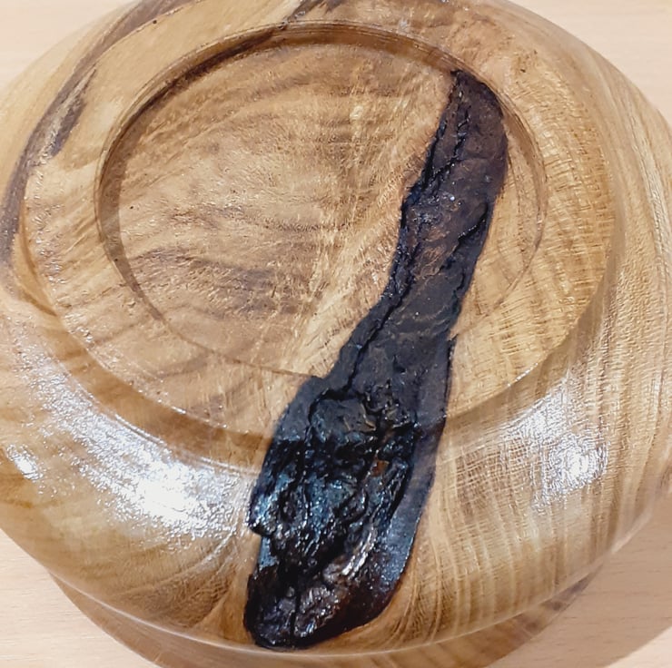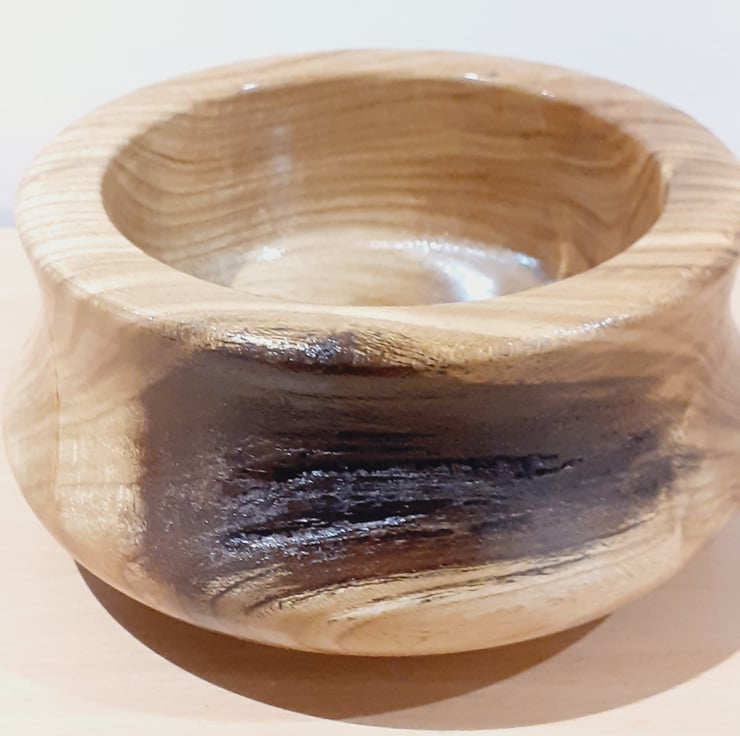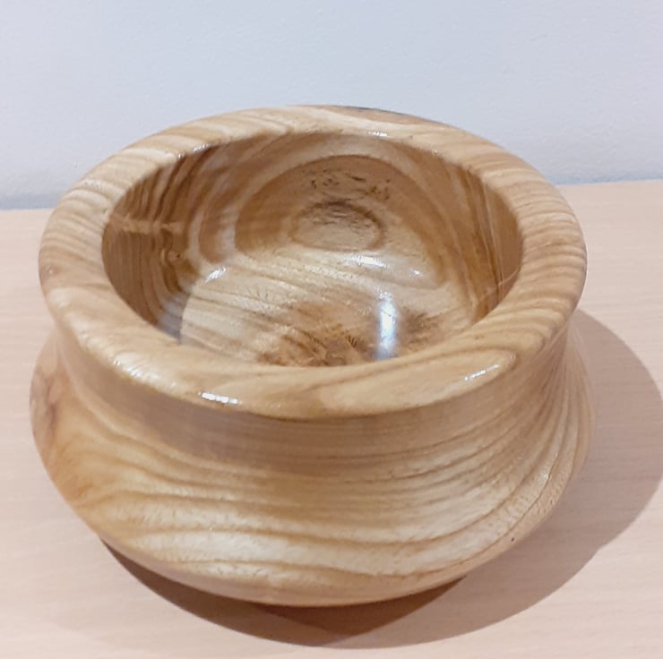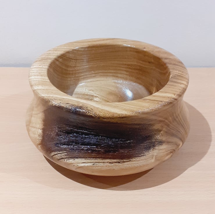 This stunning hand turned laburnum wood bowl has been created using different curve techniques and is finished using shellac. Size is approx. W 140mm x H 70mm x D 45mm.