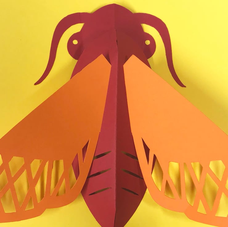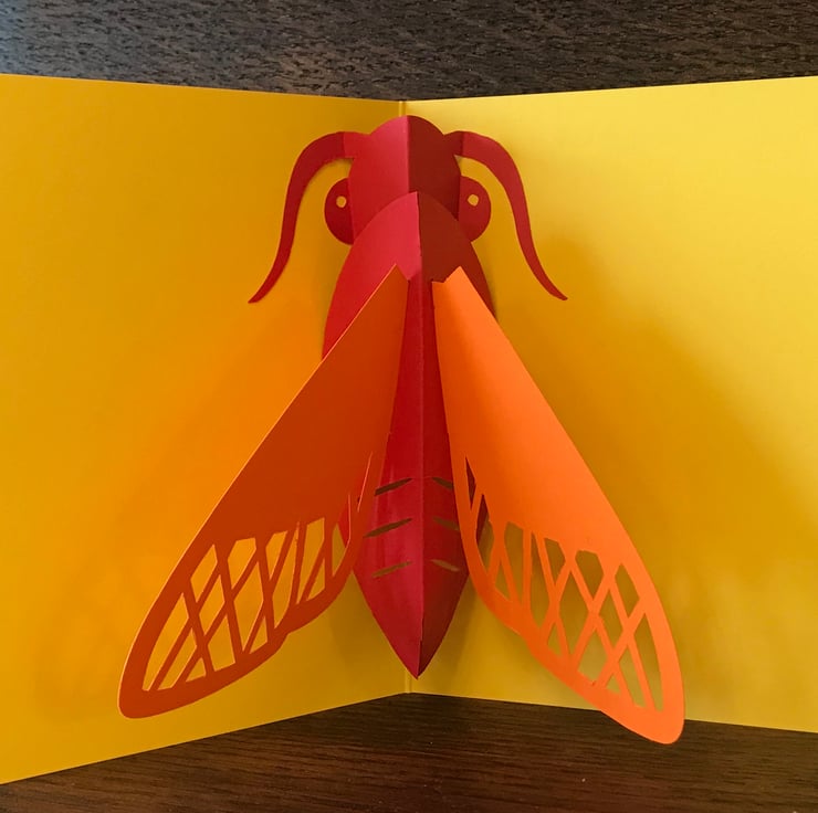 A beautiful 3D pop-up moth greetings card that unfolds pleasingly when the card is opened.