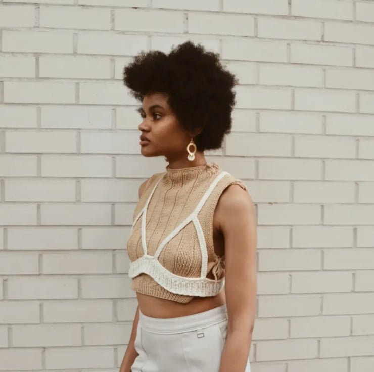 Bespoke handknit over-bra, to add an edge to your favourite outfit . Made of 100% cotton yarn.