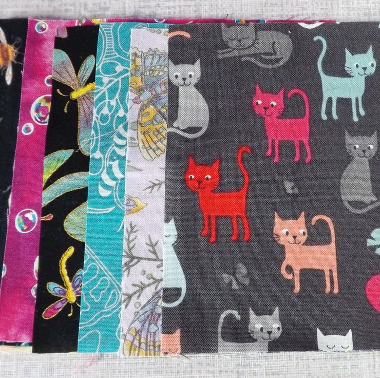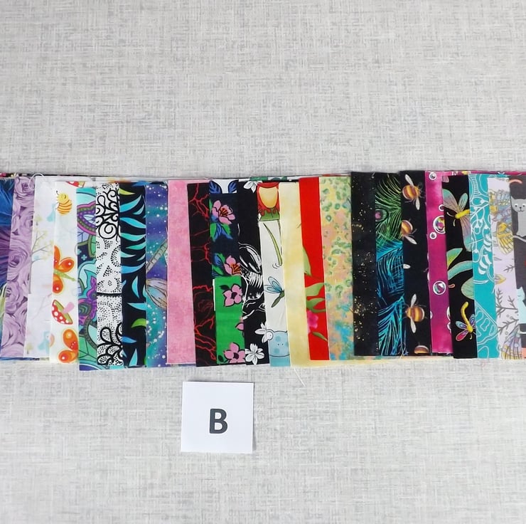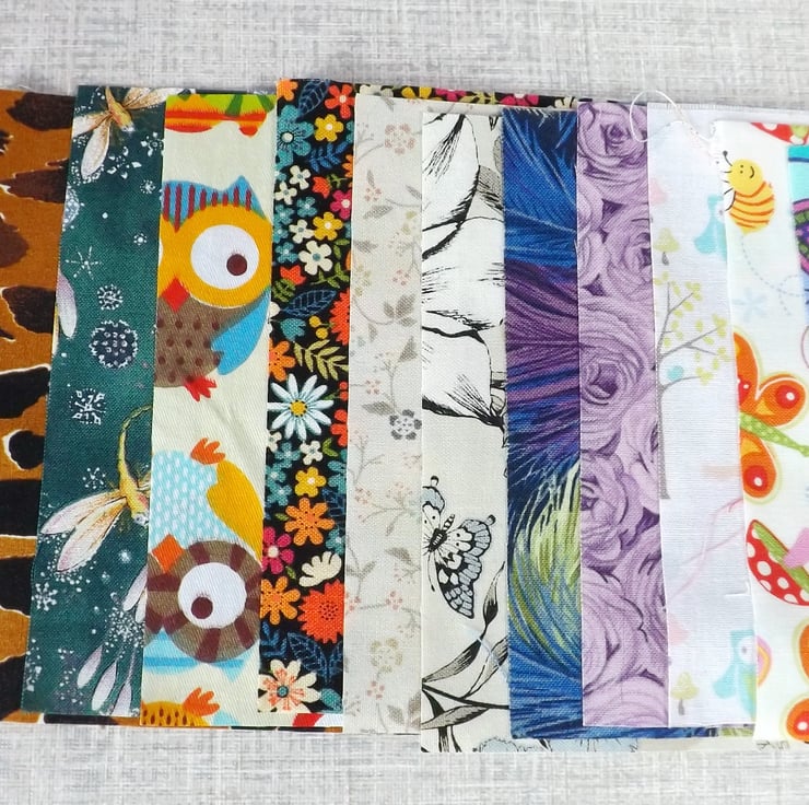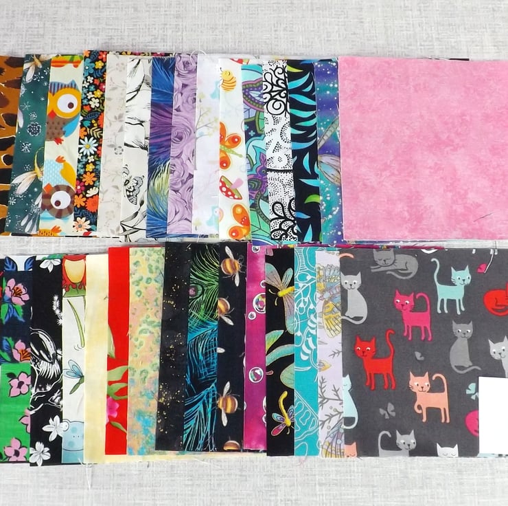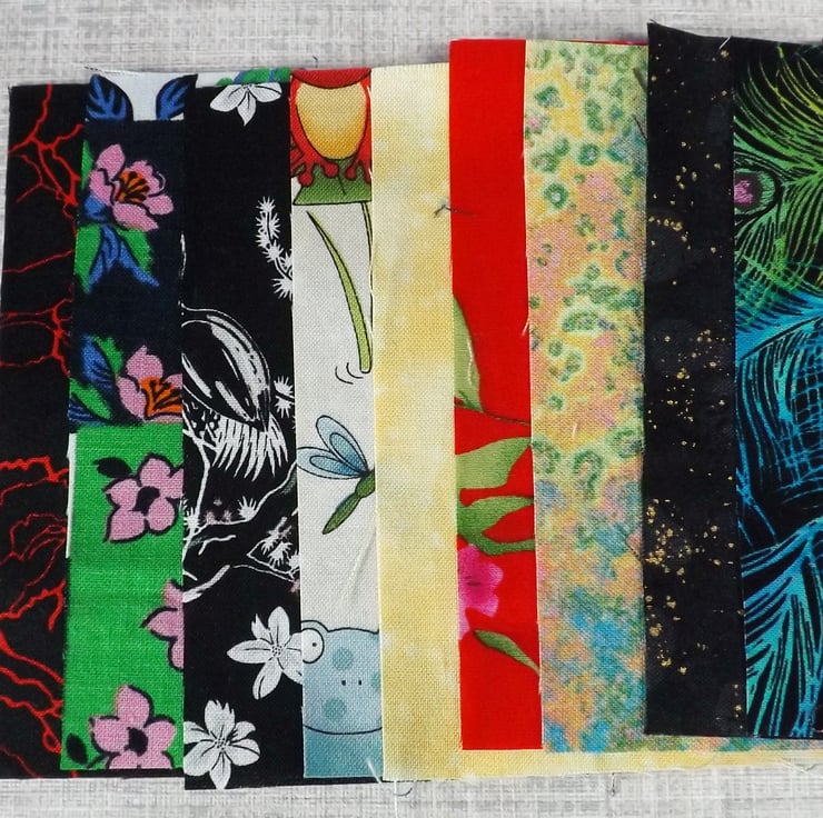 They are a random mix of beautiful prints and a few tonal and plain fabrics.
