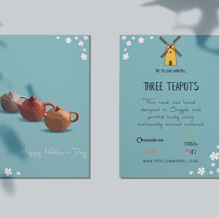 Designed, made and printed locally in the UK: All of our products are designed by Katie here in Suffolk, and printed at a local, small printing press. We collect our orders at the same time as doing our weekly shop to minimise our mileage.