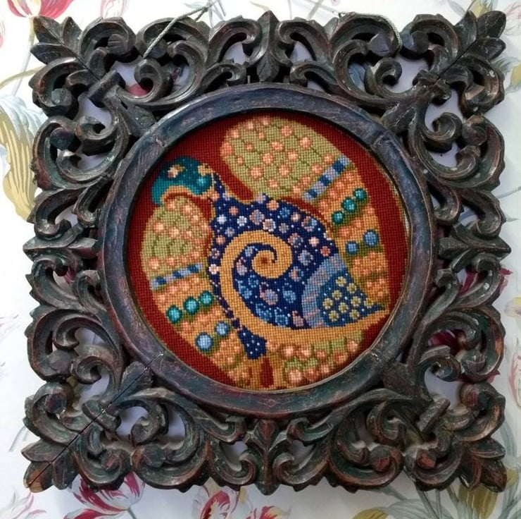 Sewn using Victorian cross stitch, no need for a frame.