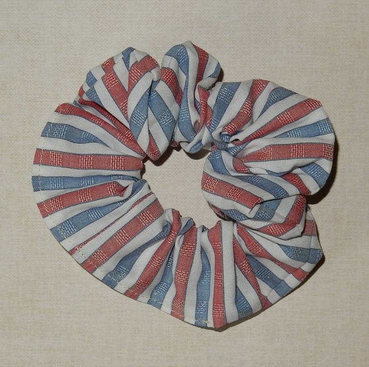 This pair of cotton scrunchies are very patriotic, they can be used to keep your hair tidy at any time, for work, pampering or sport. There is a Union Jack scrunchy and a more subtle red, white and blue striped one.